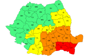 În județele Vrancea, Galați, Buzău, Prahova, Brăila, Ialomița, Călărași, Constanța, Tulcea, Ilfov și municipiul București, vântul va avea intensificări cu rafale de 50…70 km/h.