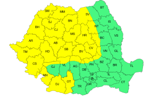 Notă: intensificări de vânt vor mai fi și în restul țării, cu viteze de 40…50 km/h.