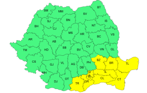 Temporar, vântul va avea intensificări în Dobrogea, sudul, centrul și estul Munteniei, cu viteze de 50…65 km/h.