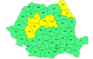 În județele Botoșani, Iași, Harghita, Mureș, Cluj, Alba și Hunedoara, vor continua să se înregistreze temperaturi deosebit de scăzute (în medie cu 5…9 grade mai mici decât cele normale datei), cu valori ce se vor încadra între -8 și -4 grade, mai scăzute până în jurul a -10 grade, pe văi și în depresiuni, unde gerul va persista.